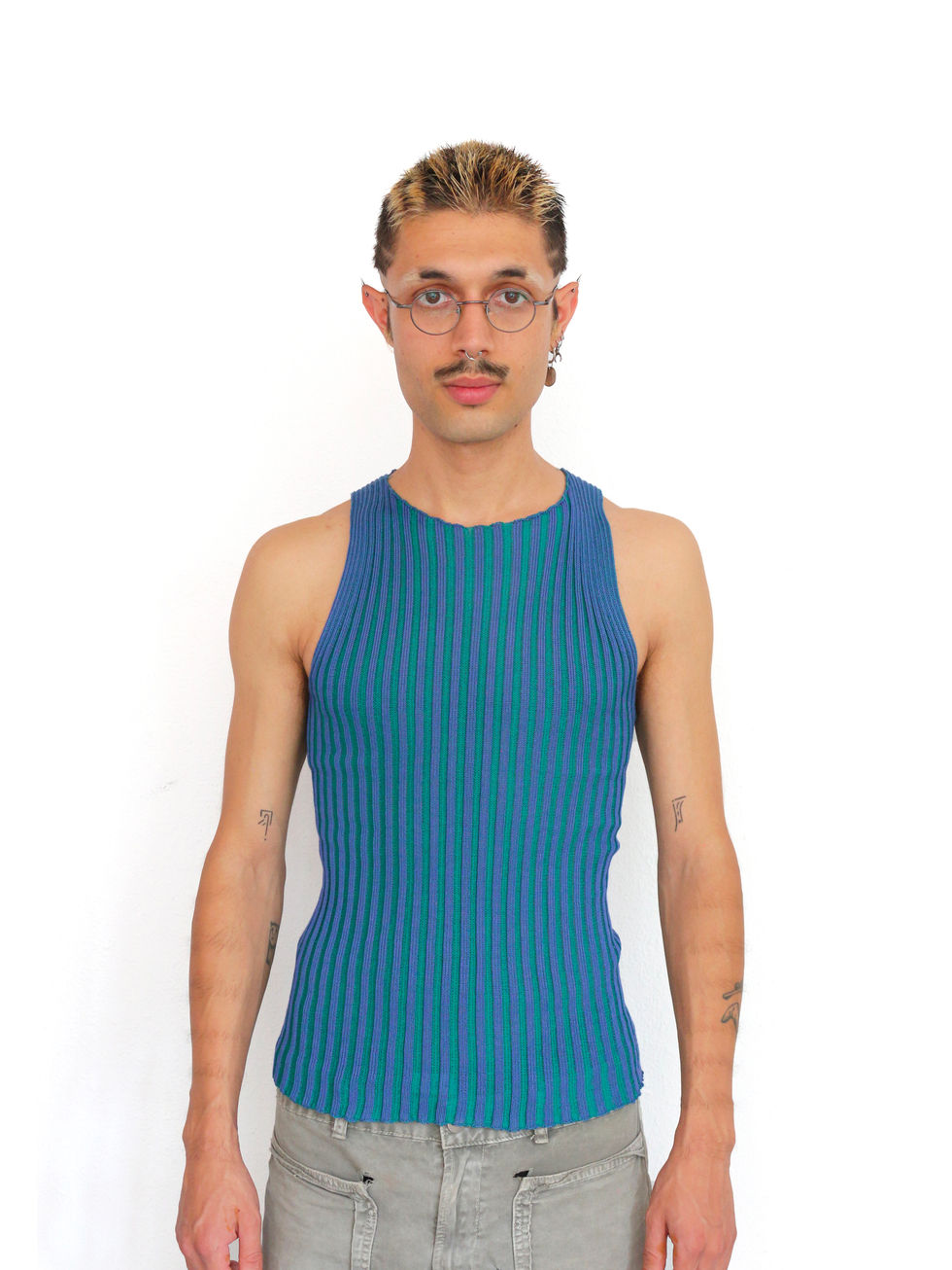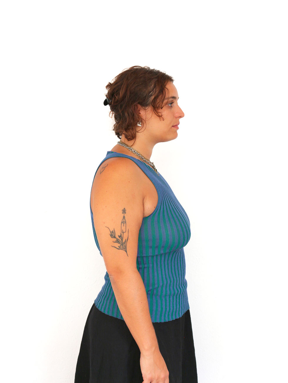 The new tank top is designed for everyday wear: a piece that is practical, comfortable, and versatile, perfect for all occasions. Crafted from our signature two-tone textured rib knit, it reveals a subtle play of color thanks to the fabric’s stretch, which responds to movement and the shape of the body.