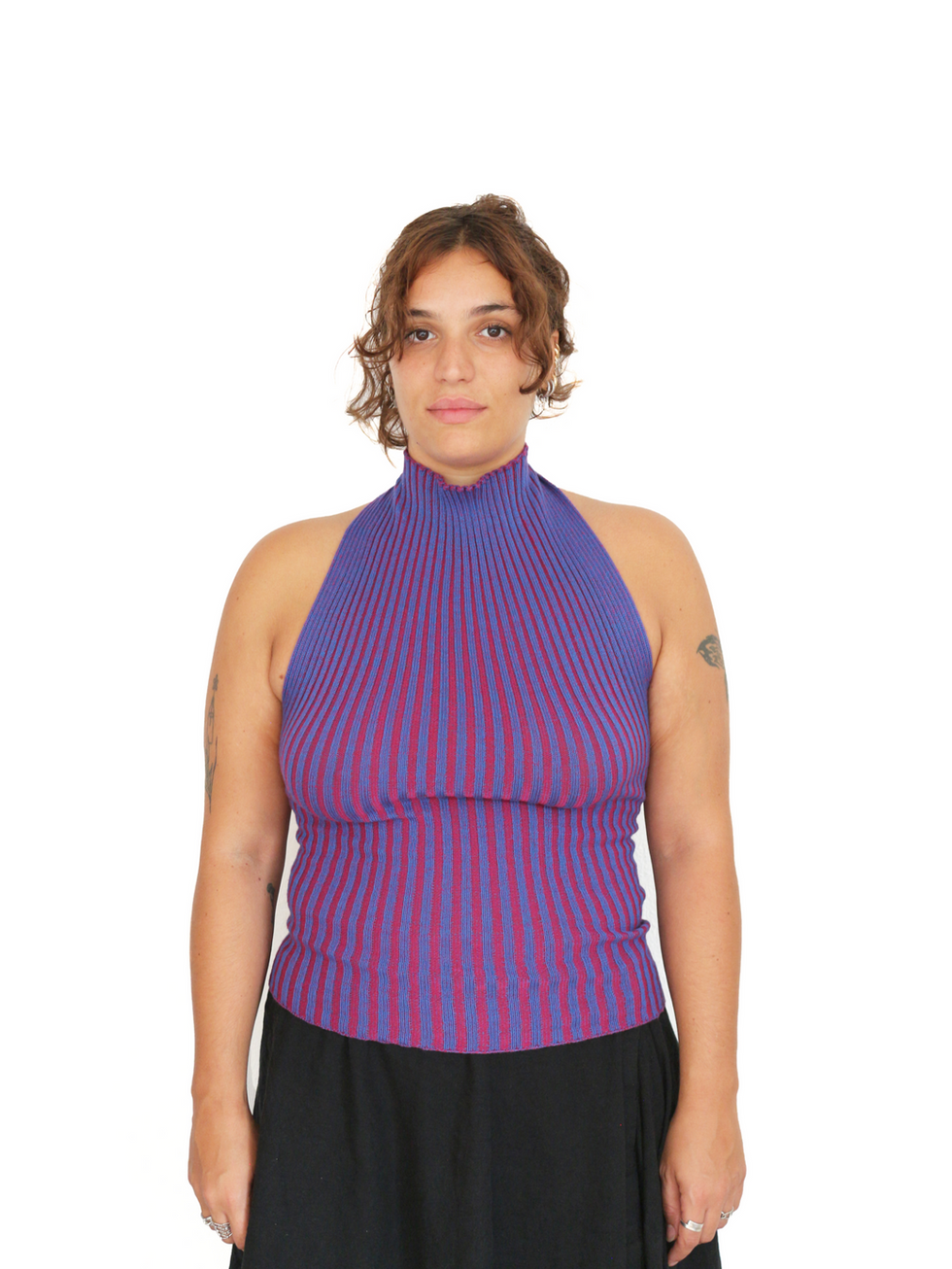 Crafted from our signature two-tone textured rib knit fabric. 85% cotton and 15% polyamide, with part of the yarn sourced from deadstock, high-quality surplus materials from the luxury industry, carefully selected in Belgium and Italy.